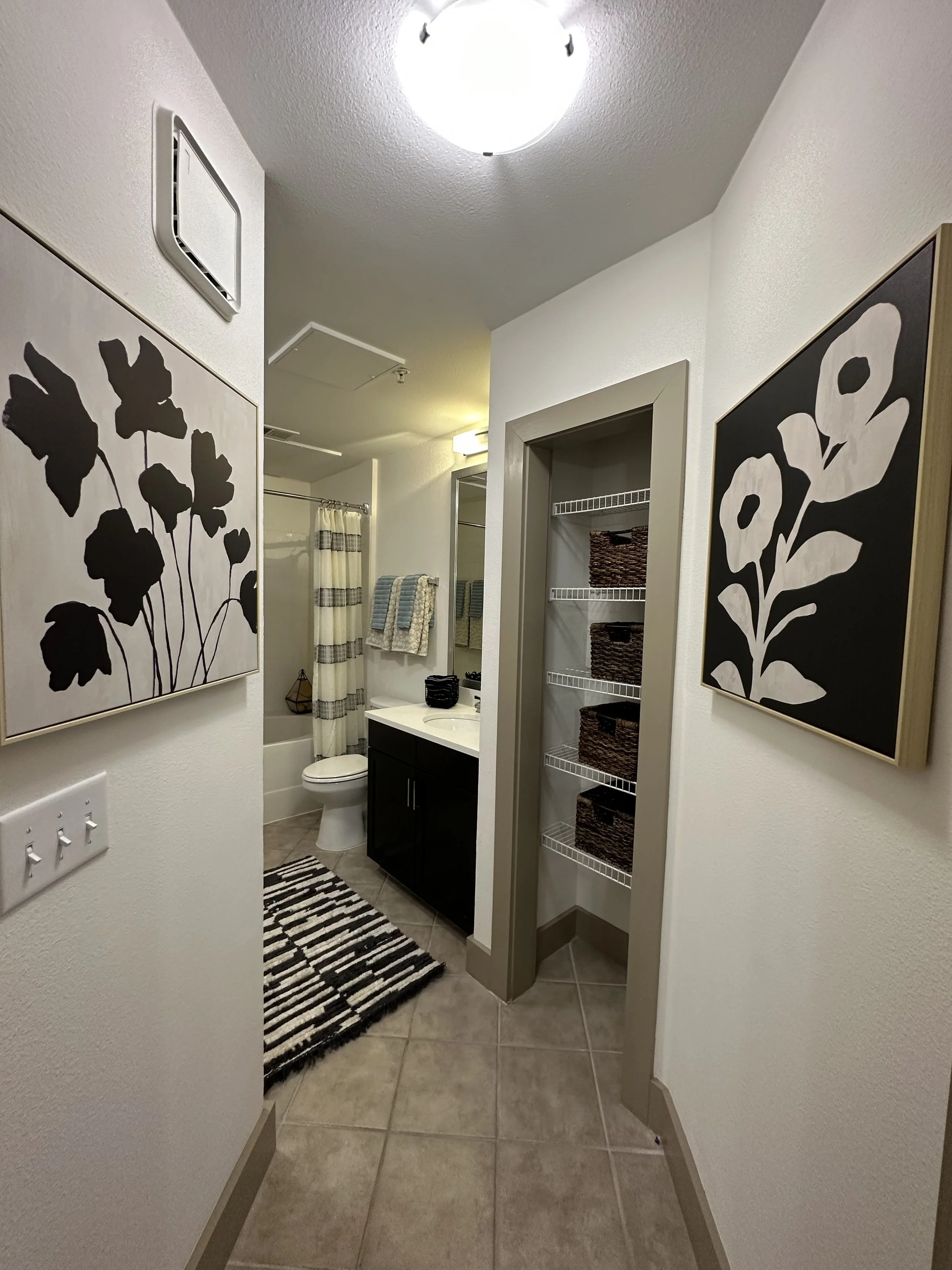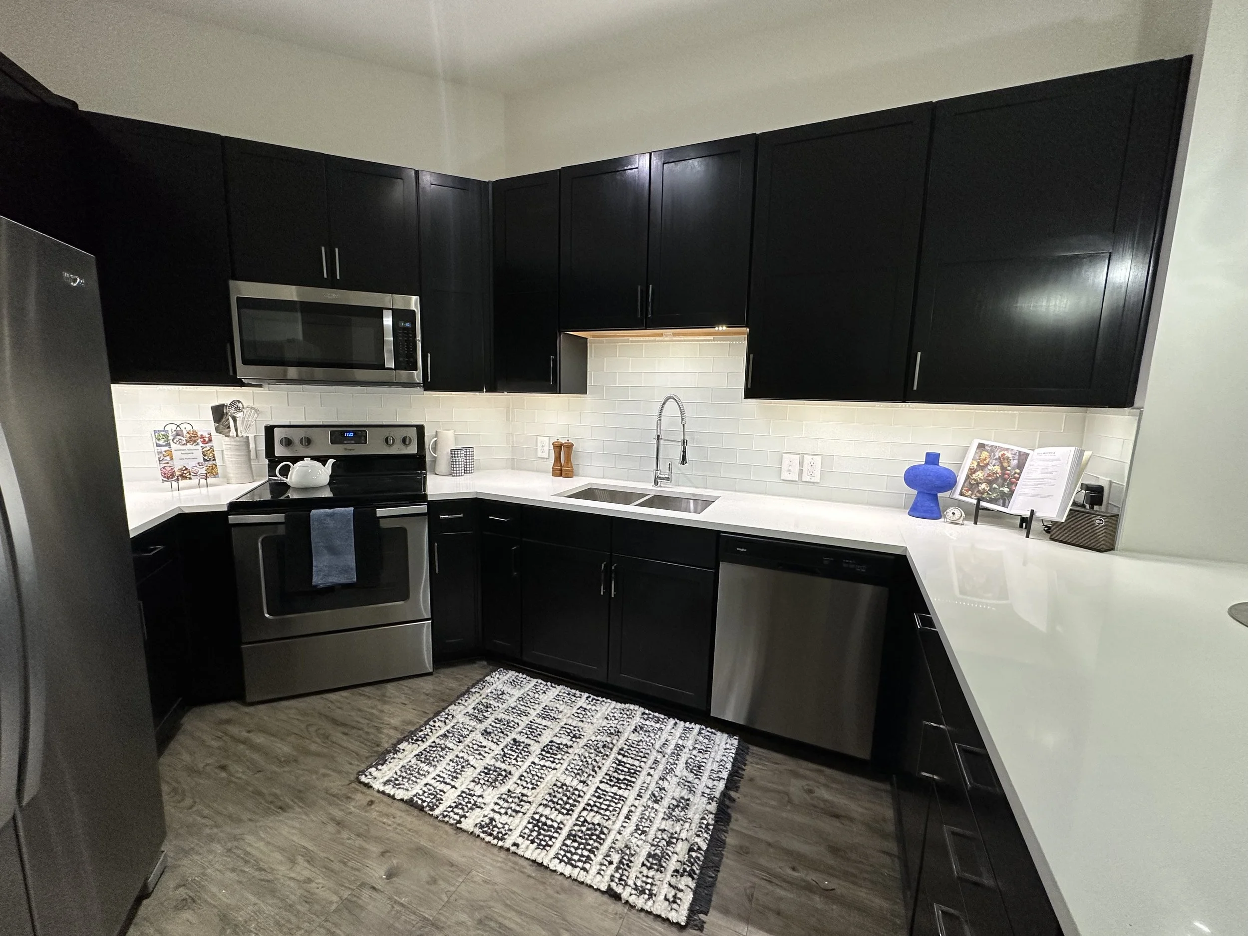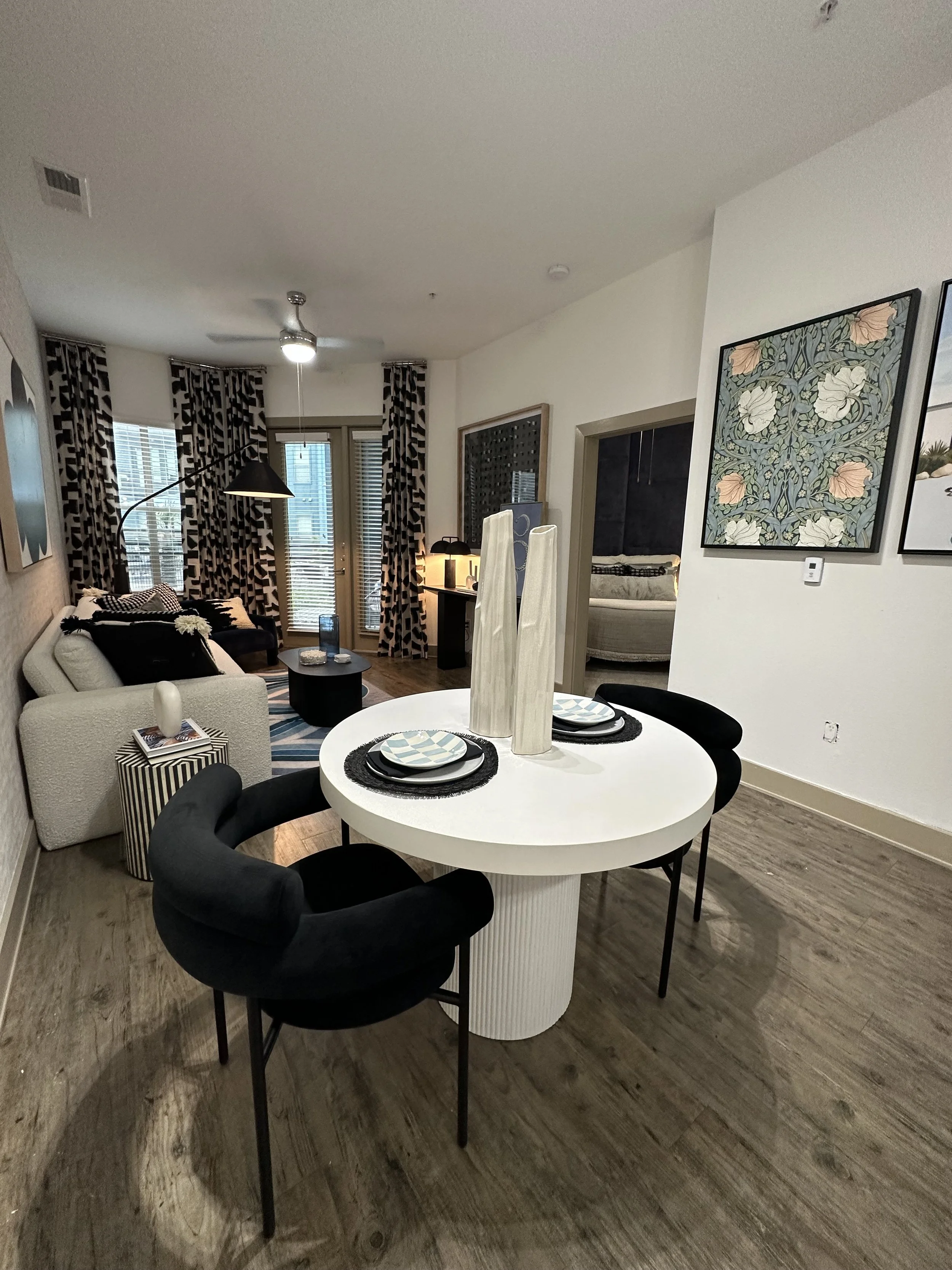 The Cortland Galleria Model is spunky and fun. There are lots of vibrant patterns around this model unit that draw your attention. This one-bed, one-bath unit features a small patio that looks over the pool, a large kitchen, and a large entertaining space. This model is unique and fits in well with the rest of the property’s feel and demographic, and will be easy for a future-resident to remember.