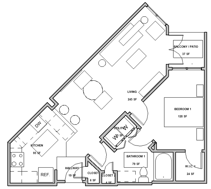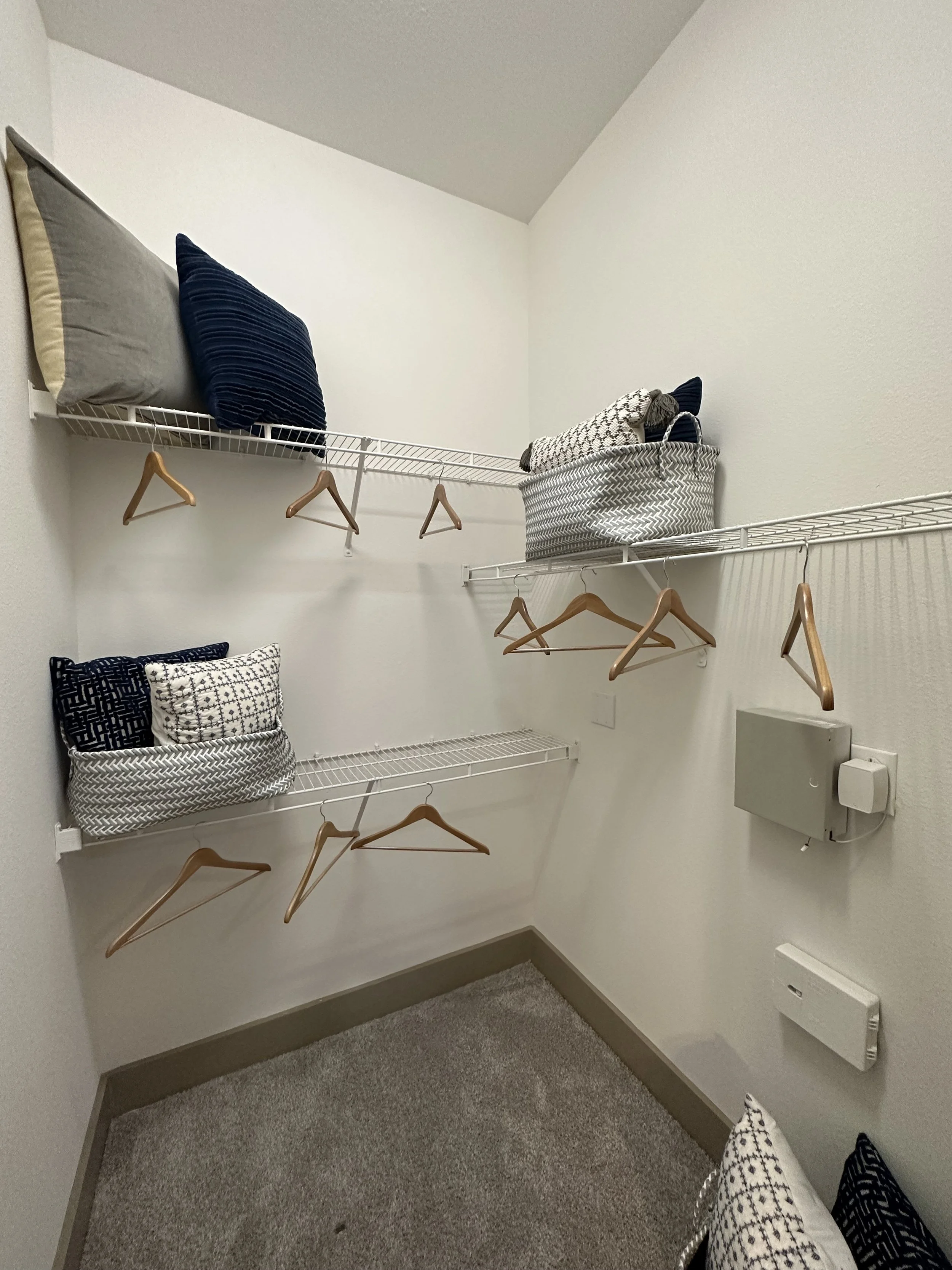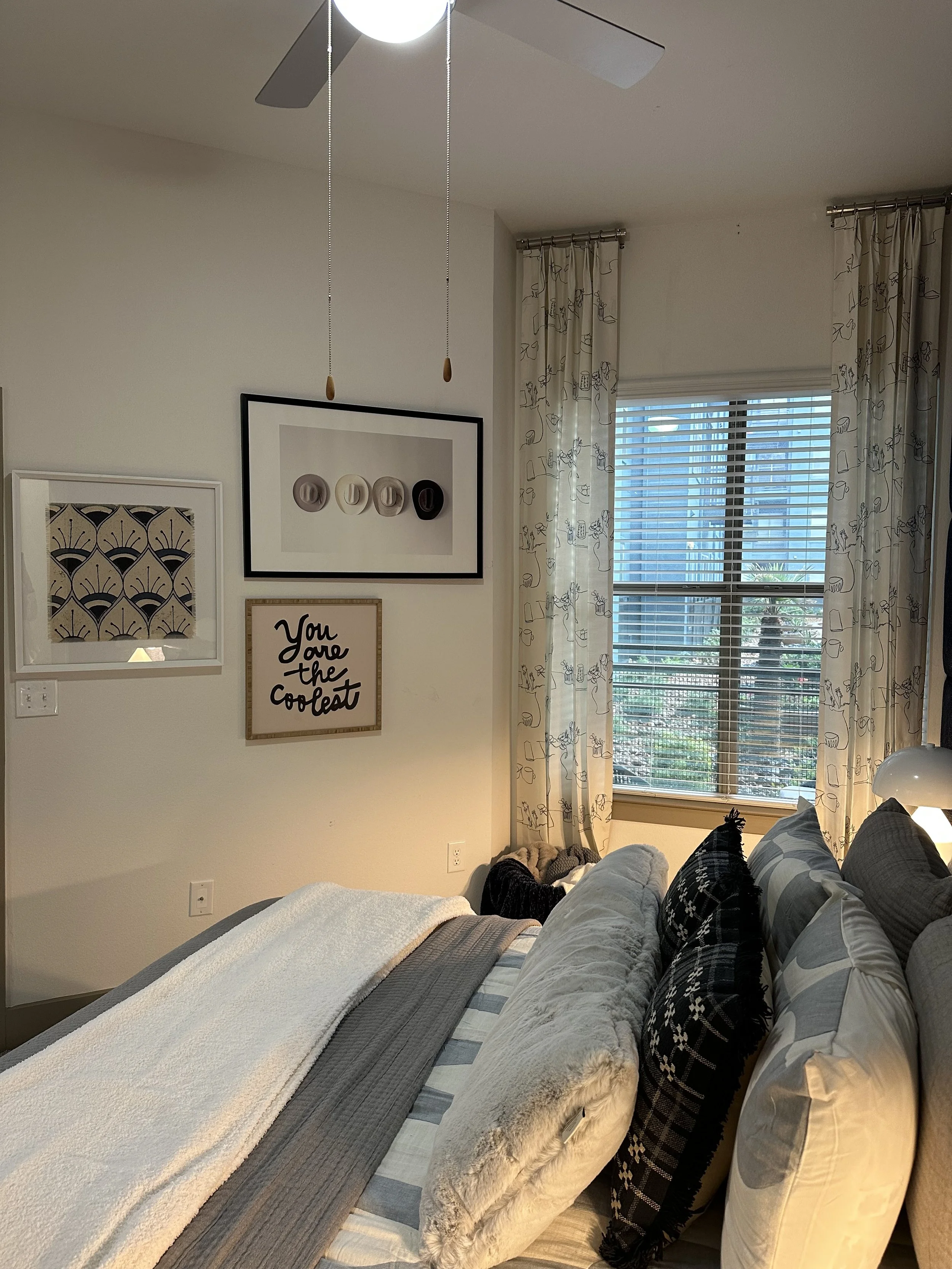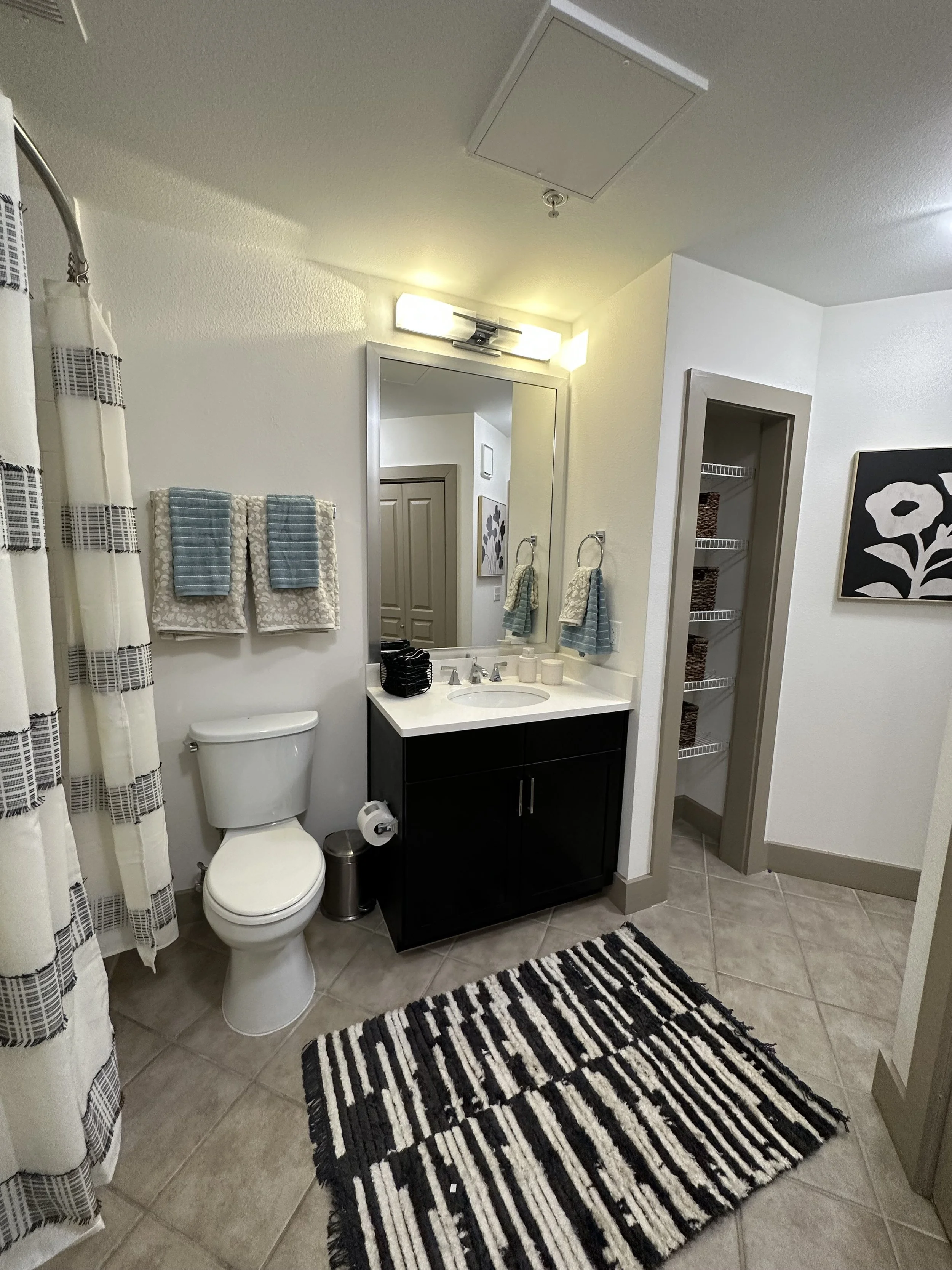 The Cortland Galleria Model is spunky and fun. There are lots of vibrant patterns around this model unit that draw your attention. This one-bed, one-bath unit features a small patio that looks over the pool, a large kitchen, and a large entertaining space. This model is unique and fits in well with the rest of the property’s feel and demographic, and will be easy for a future-resident to remember.