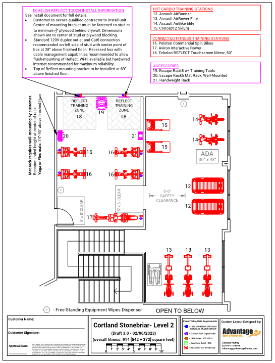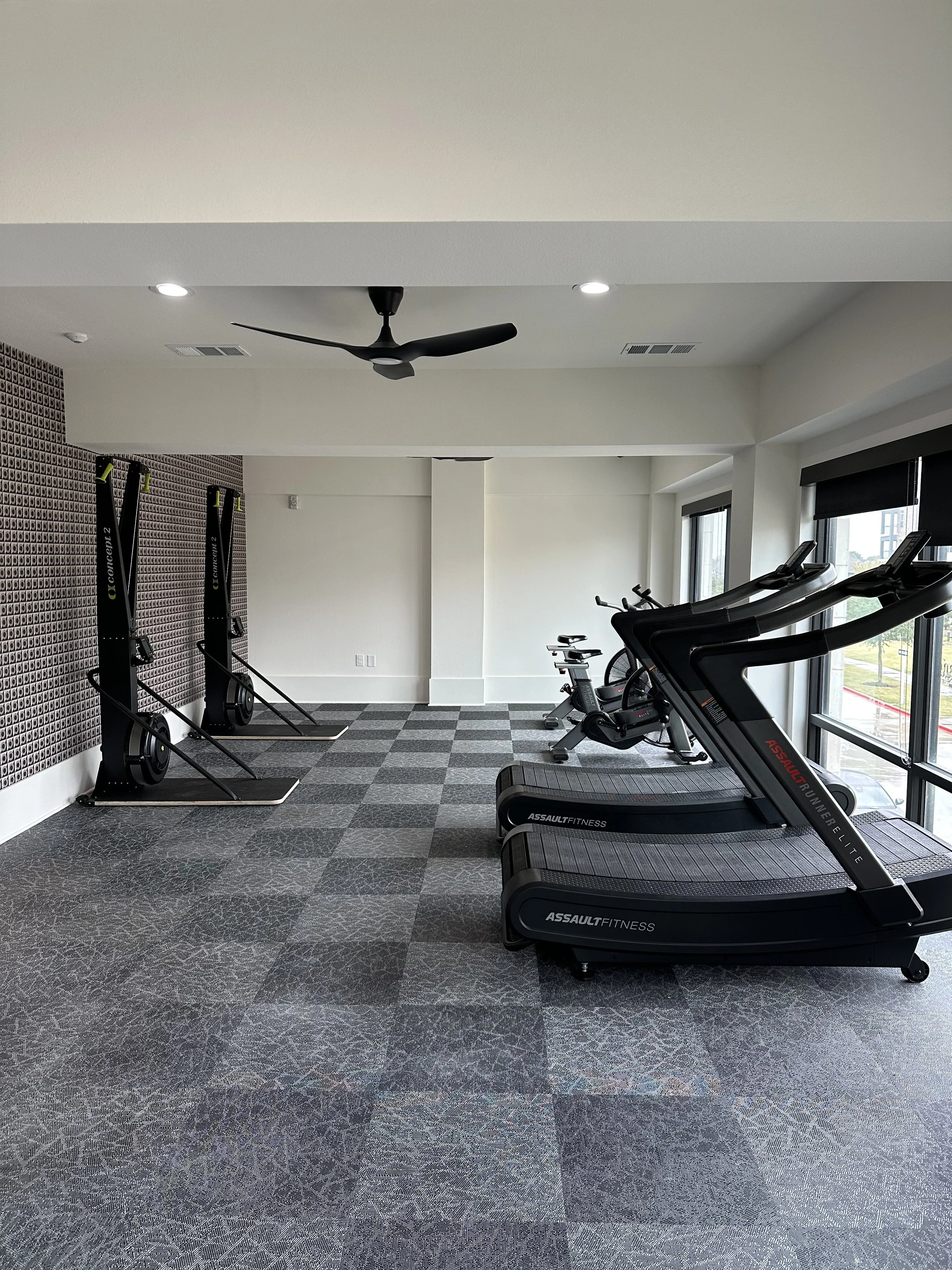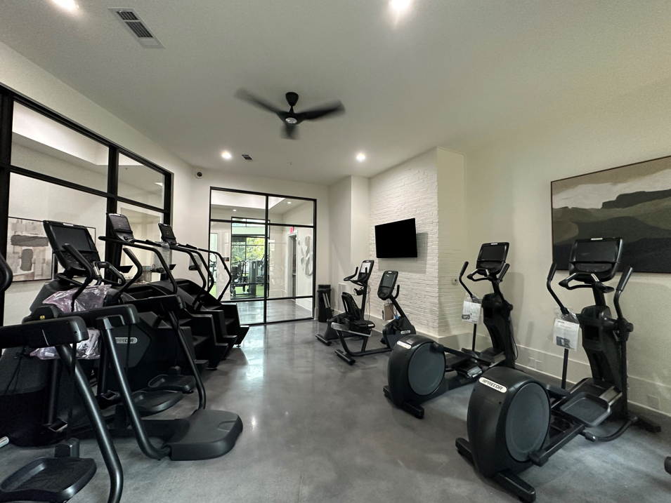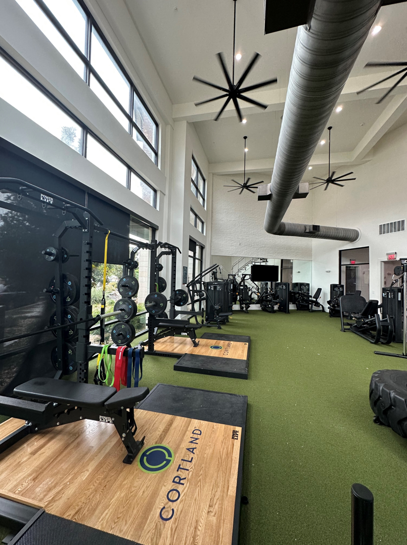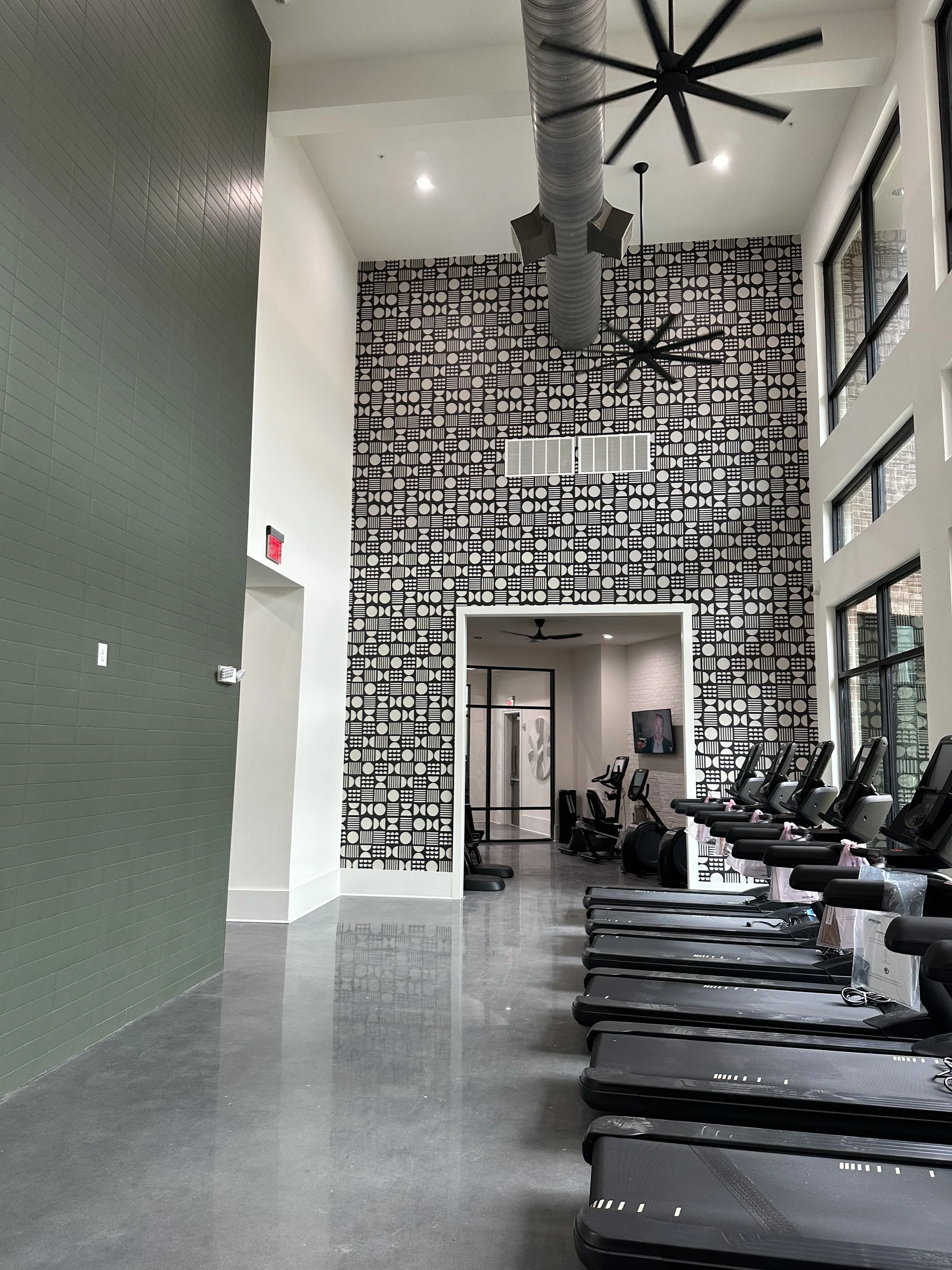 Cortland Stonebriar Fitness was a fantastic project. We converted a clubhouse and leasing office into an entire fitness center. There is over 70 pieces of equipment throughout this giant 2-story fitness center. Cortland Stonebriar is made up of 3 buildings that hosts 836 units. This fitness center will be used by all 3 buildings. This was a game changer for this property and the residents have been so excited to use their new and highly improved fitness center.