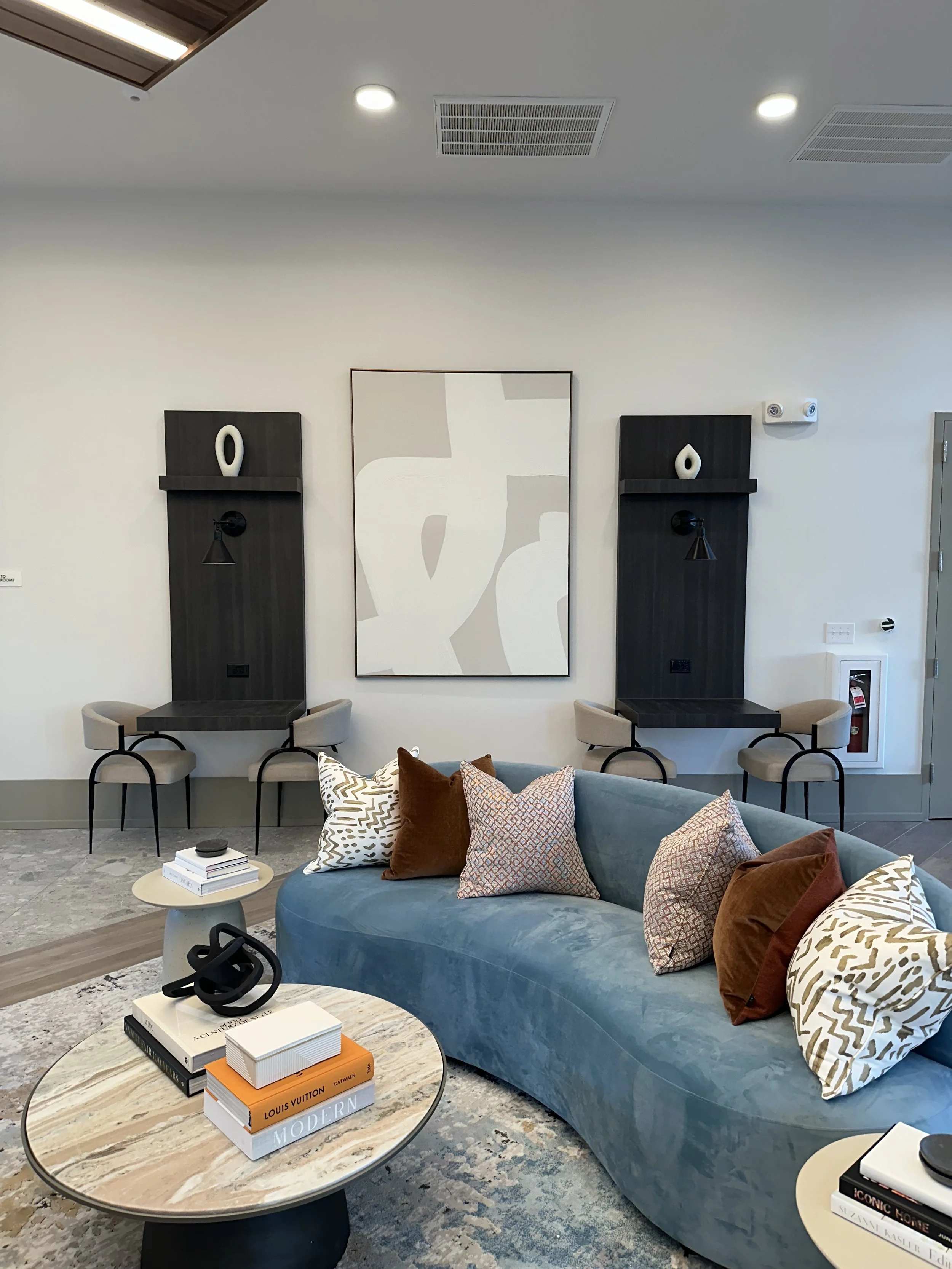 Installing the furniture and accessories in this clubhouse was wonderful. This project really came to life and was so exciting to watch along the way during construction.