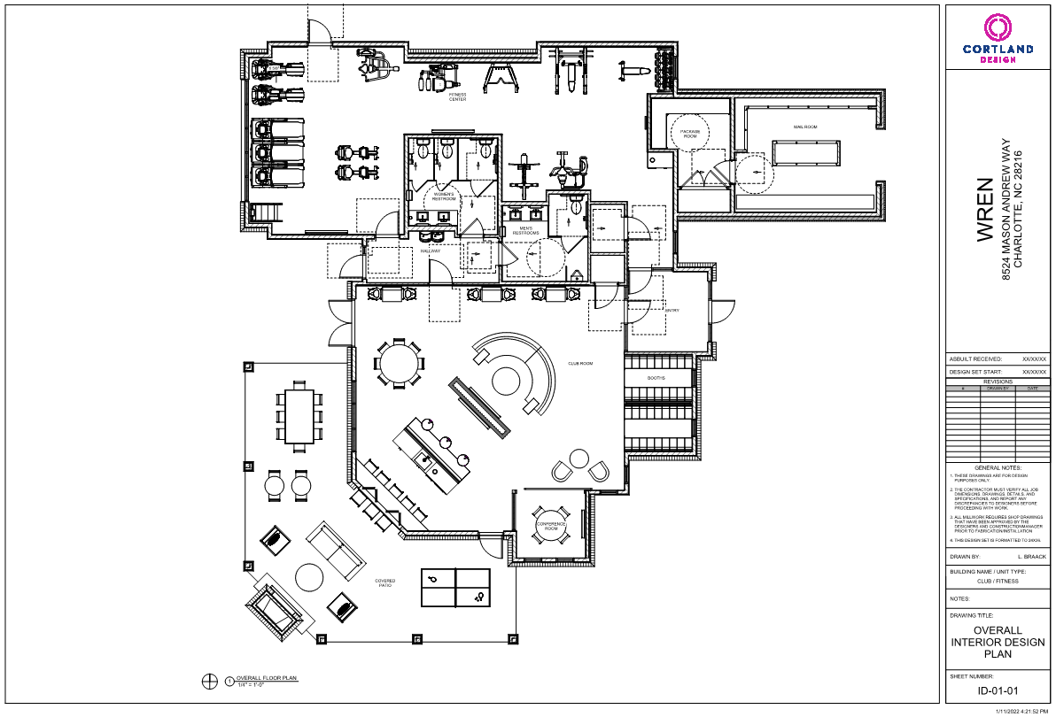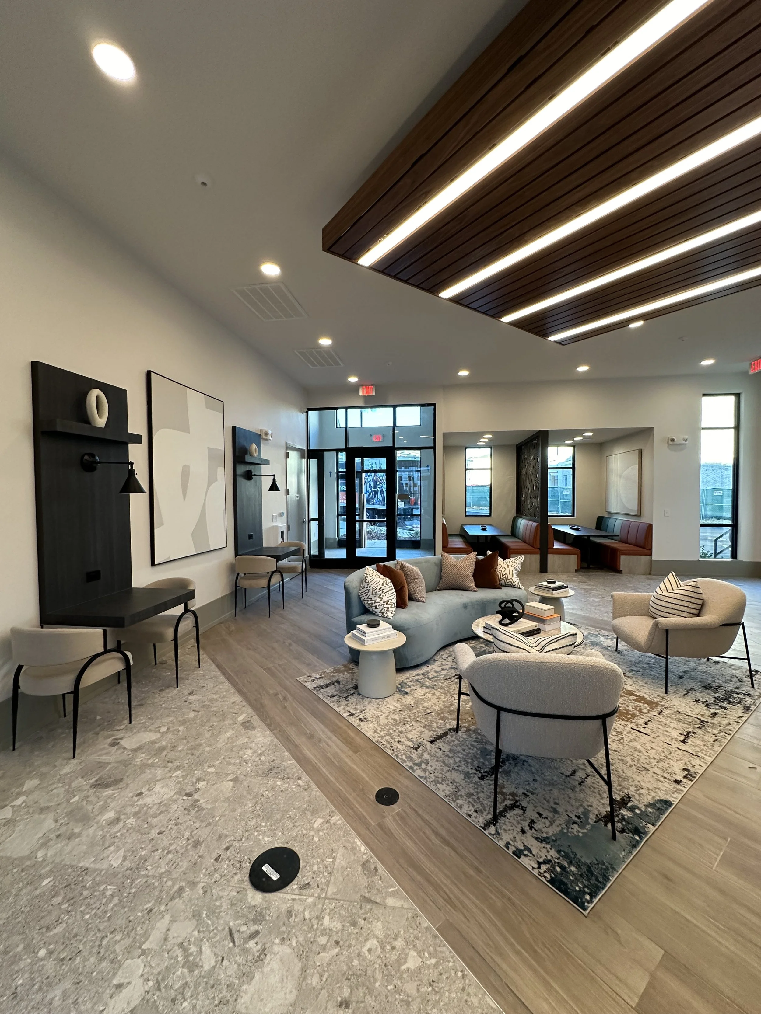 Cortland Wren Northlake 2.0 is a new-development project in Charlotte, North Carolina. Cortland Design produced the construction document set for this project, along with a 3rd party architecture firm. I completed the CD set in December of 2021 for the amenity/clubhouse, and installed the furniture inside the clubhouse in November of 2023. Wren 2.0 was my first construction document set to complete and was my first full-circle project that I was able to work on from beginning to end.